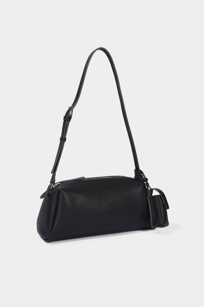 A leather shoulder bag crafted from supple cowhide, featuring softly curved lines and a subtle sheen with natural grain texture. Designed with a top zip closure and an interior card slot for everyday practicality. The adjustable buckle strap offers versatile styling, while the removable lipstick case charm adds a refined, functional accent-perfect for elevating daily looks.