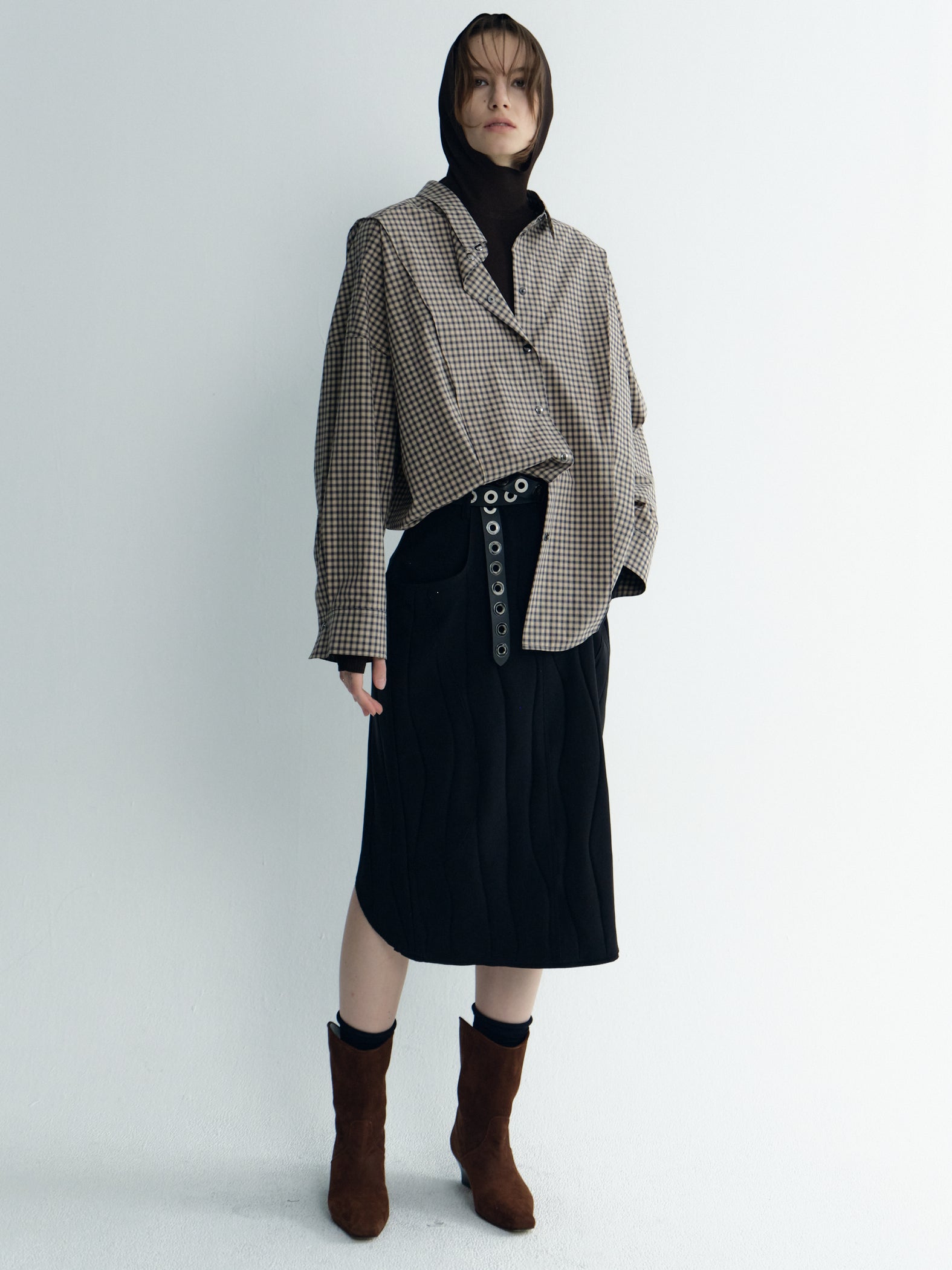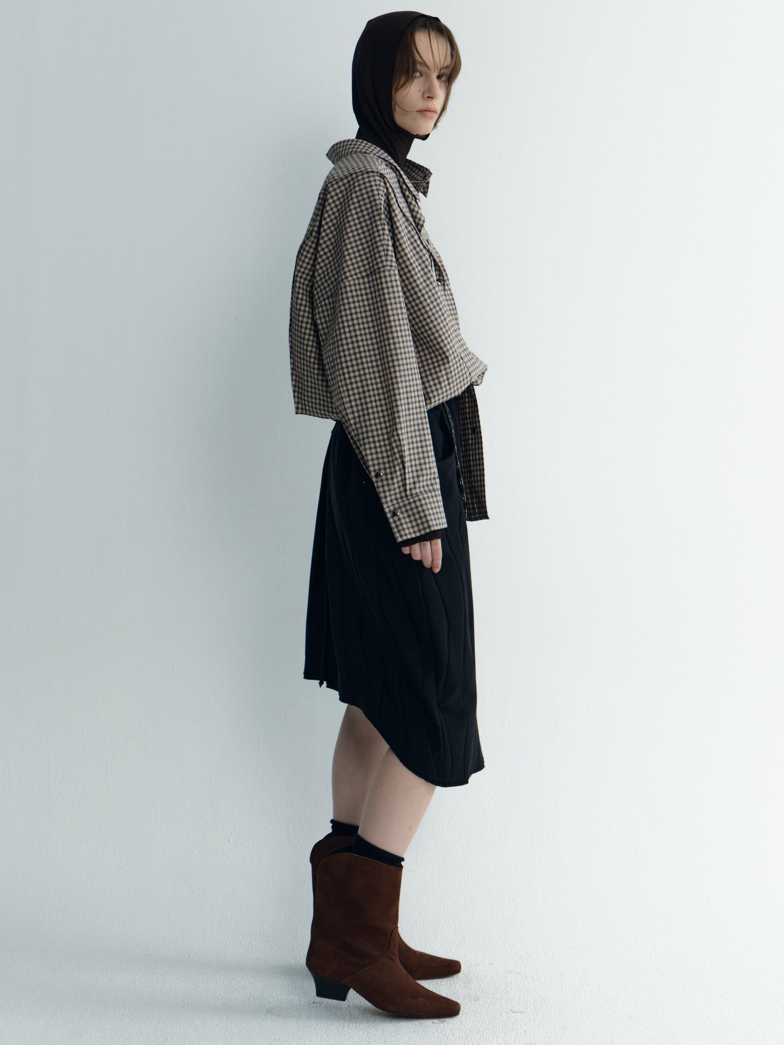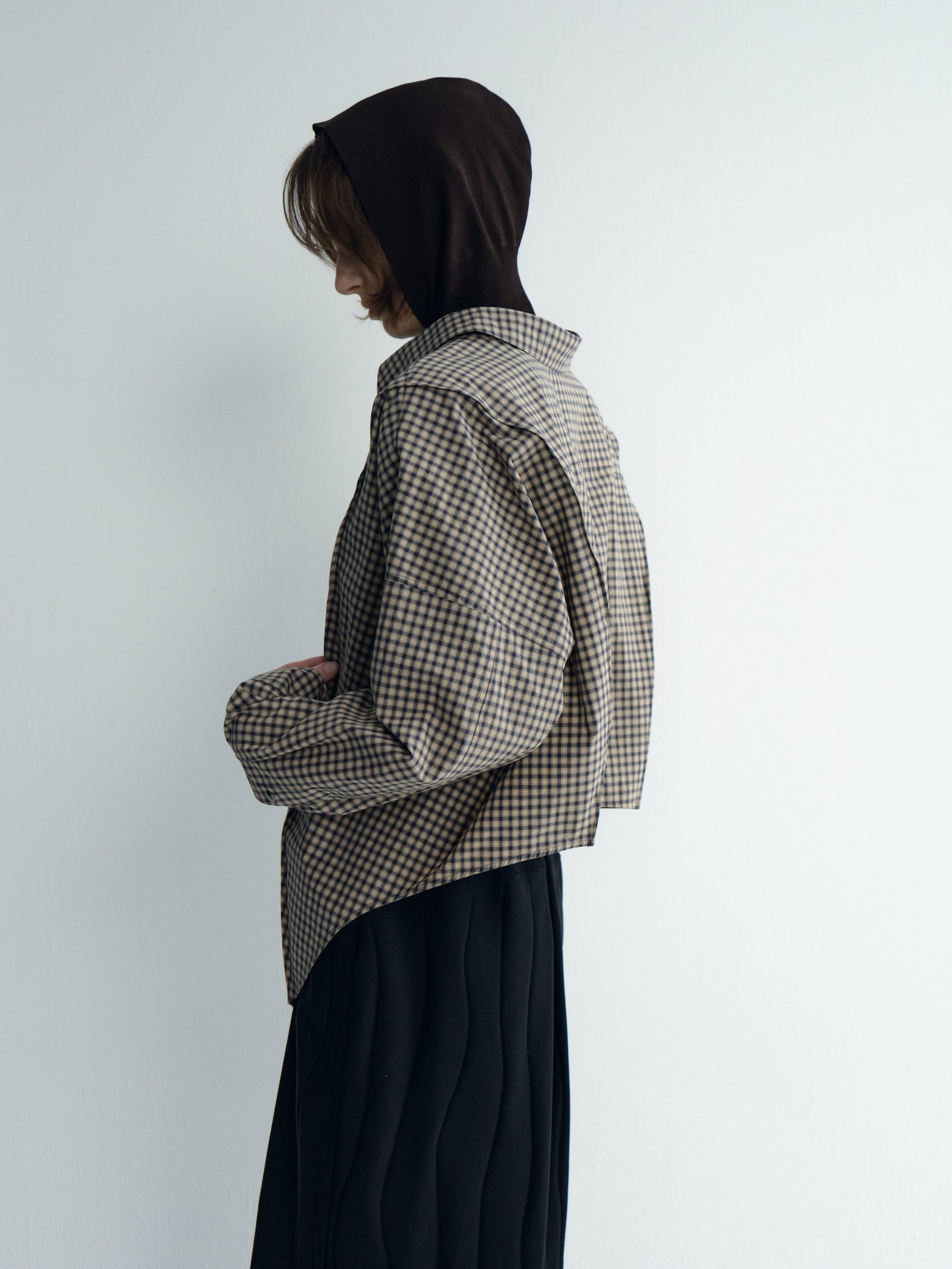 Oversize Back-Croppedwool Check Shirt